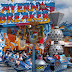 Detta halsband har två snörningar. Ett benvitt med buckligt hjärthänge som sammanhänger med en pärltråd bestående av vita, mörkgula och gråa glaspärlor, samt två mönstrade plastpärlor.